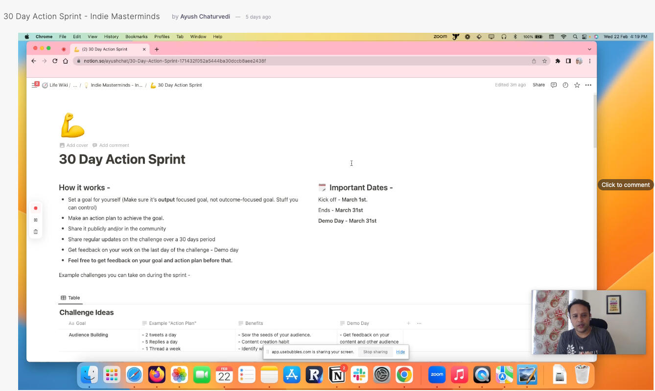Community Only challenges, sprints and demo days.So that you stay on track towards your goals, get external accountability and do work that actually moves the needle.