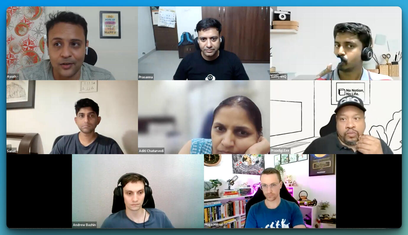 "Fantastic community with Ayush leading the way. Weekly co-working sessions and the cohorts are integral part of this community. The right amount of criticism and encouragement. I am bootstrapping a product and this community is instrumental in its growth.."βββββ