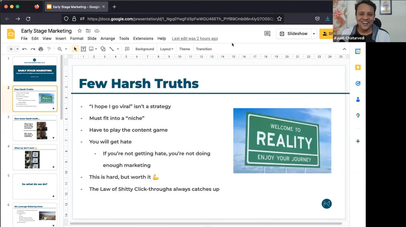 Sessions on topics like - Early Stage Marketing, Positioning, Pricing Strategies, SEO, Copywriting etc.